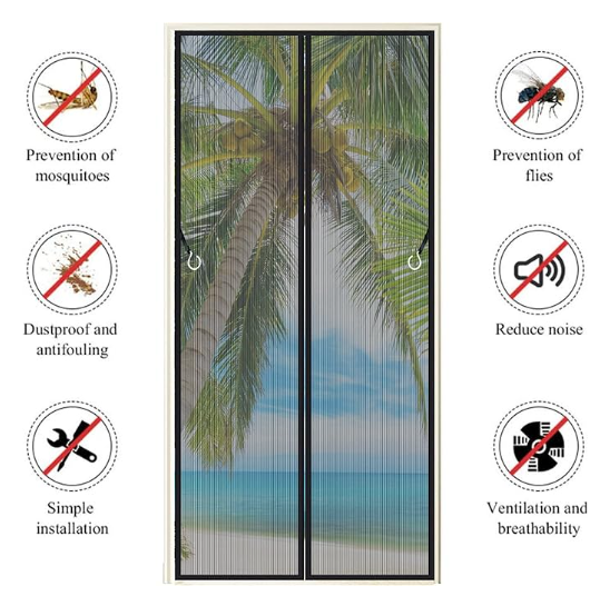 Disfruta de aire fresco sin invitados no deseados con nuestra cortina magnética de malla fina, que permite la entrada de aire limpio mientras bloquea mosquitos, moscas y otros insectos molestos. Ideal para mantener un ambiente saludable y reducir el uso de aire acondicionado o repelentes químicos.