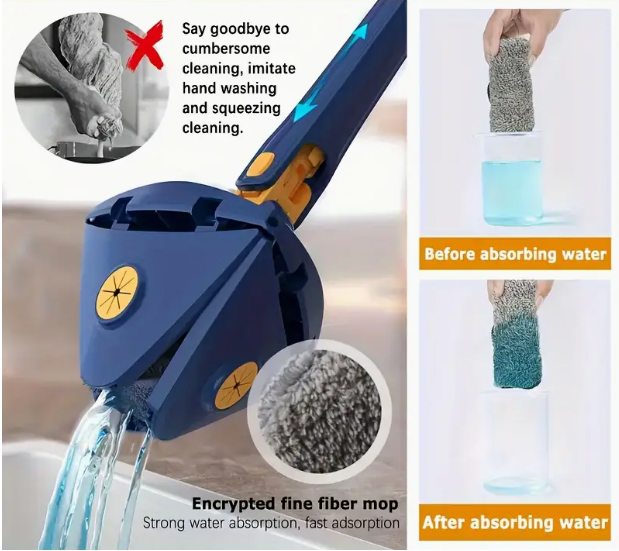 ✨ Mantén tu hogar impecable de manera fácil y eficiente con la Fregona Giratoria 360º Triangular Autoescurrible.