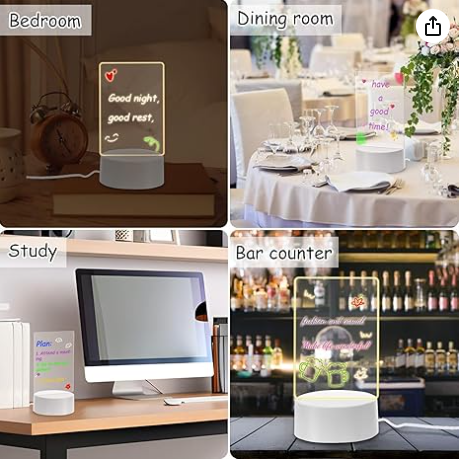 Esta lámpara LED de acrílico es perfecta para dar un toque personal a cualquier espacio, inspirar creatividad y mantener tus notas o mensajes siempre visibles.